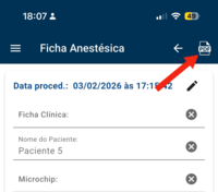 Após preencher todos os campos da ficha anestésica, toque no botão PDF.